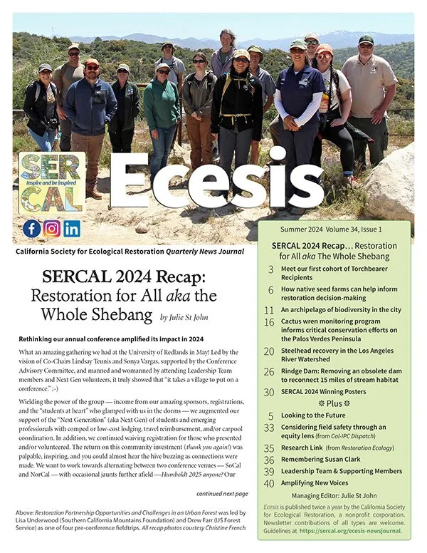Ecesis is like a mini-conference delivered directly to California's restoration community! And BONUS! We're highlighting articles in social media. We are soliciting thought-provoking articles from colleagues, from interesting presentations we’ve heard, from people who are on the front lines of the latest trends.
